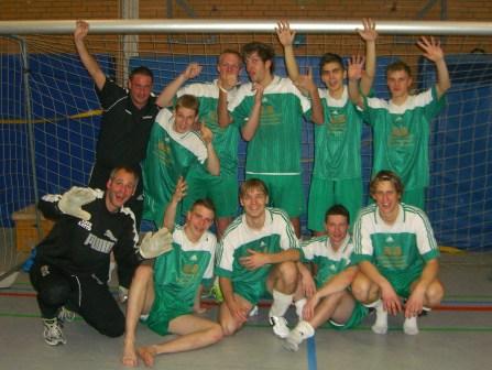 In Feierlaune - Die 2. Herrren des TV Jahn gewann das eigene traditionelle Hallenturnier am 2. Neujahrstag.