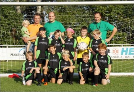 Die F-Jugend des TV Jahn Leveste mit ihren Trainern Uwe van der Velde und Detlef Gillner freut sich über einen neuen Trikotsatz. Gestiftet wurden die Trikots vom Gehrdener Steuerberater Jens Gieseler (auf dem Foto ganz links), der selbst in Leveste wohnt. Durch die neuen Trikots war die Mannschaft so beflügelt, dass im ersten Spiel der Gegner aus Kohlenfeld mit 13:1 besiegt wurde. Auch die weiteren Spiele gegen Groß Munzel und Gümmer konnten gewonnen werden und so gesellte sich mit dem 2.Tabellenplatz zum modischen auch der sportliche Erfolg.