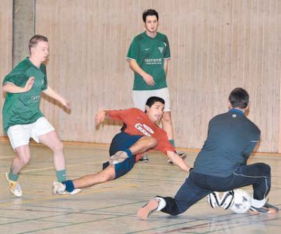 Die Sportfreunde Landringhausen haben das Turnier des TSV Kirchdorf gewonnen: Der Herbstmeister der 1. Kreisklasse bezwang im Finale Bezirksligist und FavoritTV Jahn Leveste mit 4:1und hatte den Kontrahenten weitgehend im Griff. Delil Sincar, Murat Gündüz und Dennis Wolff hatten ihre Farben mit 3:0 in Führung geschossen, ehe Samson Appiah verkürzte. Marcel Bock besiegelte mit demvierten Treffer den erneuten Triumph der Sportfreunde. Im Halbfinale hatte Landringhausen den TSV Groß Munzel nach einem 4:4 in der regulären Spielzeit mit 7:6 nach Neunmeterschießen ausgeschaltet. Auch Leveste benötigte die Verlängerung vom Punkt, nachdem es gegen den TSV Kirchdorf 2:2 gestanden hatte. Auch hierlautete das Endergebnis 7:6. Ergebnisse: Vorrunde – Gruppe A: Germania Egestorf/L. II – TSV Goltern 1:5, Borussia Hannover – TV Jahn Leveste 3:6, TSV Groß Munzel – Egestorf/ L. II 3:1, Goltern – Hannover 1:8, Leveste – Groß Munzel 2:6, Hannover – Egestorf/L. II 2:1, Leveste – Goltern 3:2, Groß Munzel – Hannover 7:4, Egestorf/L. II – Leveste 3:4, Goltern – Groß Munzel 3:0; Tabelle: 1. Groß Munzel 19:7 Tore/12 Punkte, 2. Leveste 15:14/9, 3. Hannover 18:15/6, 4. Goltern 8:16/3, 5. Egestorf 6:15/0; Gruppe B: SF Landringhausen – TSV Barsinghausen II 7:1, SG Bantorf/W. – TSV Kirchdorf 2:5, Basche United (A-Junioren) – Landringhausen 1:2, Barsinghausen II – Bantorf/W. 1:0, Kirchdorf – Basche United 3:2, Bantorf/W. – Landringhausen 0:1, Kirchdorf – Barsinghausen II 1:2, Basche United – Bantorf/W. 5:1, Landringhausen – Kirchdorf 1:4, Barsinghausen II – Basche United 4:4; Tabelle: 1. Kirchdorf, 13:7/9, 2. Landringhausen 11:6/9, 3. Barsinghausen II 8:12/7, 4. Basche United 12:10/4, 5. Bantorf/ W. 3:12/0; Halbfinale: Groß Munzel – Landringhausen 6:7, Kirchdorf – Leveste 6:7 (beide nach Neunmeterschießen); Spiel um Platz 3: Kirchdorf – Groß Munzel 4:1; Finale: Landringhausen – Leveste 4:1