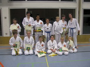 Neue Farben leuchten an den Anzügen der Nachwuchs-Judoka des TV Jahn Leveste, nachdem sie ihre Gürtelprüfungen erfolgreich beendet hatten. Unter den Augen von Wolfgang Falke (6. Dan) mussten sie ihr Können unter Beweis stellen – und beeindruckten den Prüfer mit ihren Leistungen. Die jüngste Athletin war die erst sechsjährige Greta Gröning. Sie trat zum ersten Mal zu einer Gürtelprüfung an und darf nun den weiß-gelben Gurt tragen. Besonders angetan war Falke allerdings von Lea Sara Butigan, die in allen Disziplinen mit überdurchschnittlich guten Punktzahlen herausstach und den grün-blauen Gürtel dafür bekam. Bereits den 2. Dan erhielt Leon Oppenborn – allerdings bei der Landesprüfung für Taekwondo-Meister in Bad Münder. Er konnte die Prüfer mit soliden Leistungen überzeugen. Besonders in seiner Lieblingsdisziplin Poomse erhielt er ausgezeichnete Punktzahlen. Glücklich nahm er den Gürtel, der bis zu seinem 15. Lebensjahr noch „Poom“ heißt und rot-schwarz ist, entgegen. Quelle: Calenberger Zeitung |