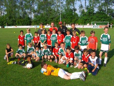 Rot und Grün friedlich vereint - Die Jungs vom TV Jahn Leveste mit den Kickern von Hannover 96