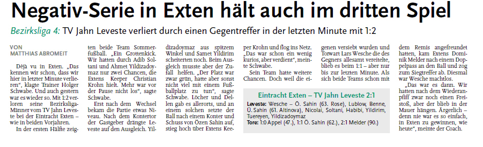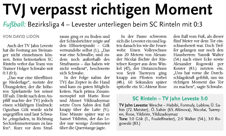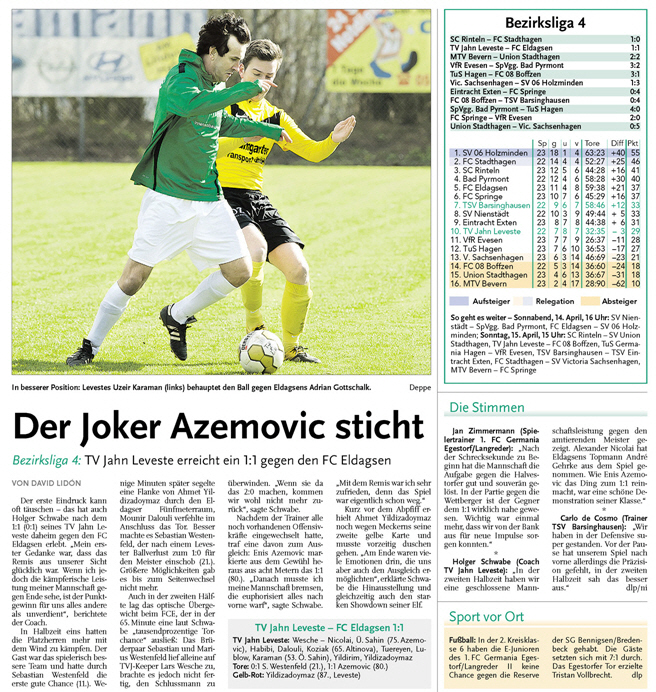 1. Herren: 2:1-Heimsieg (Calenberger Zeitung) |