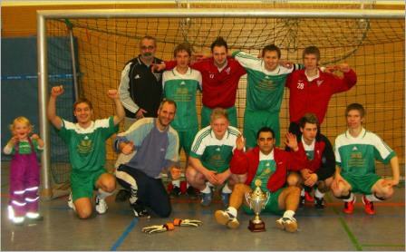 Kirchohsen (He). Die II. Herren des TV Jahn Leveste haben das Hallenturnier um den Friedrich-Wilhelm-Sievers-Cup der SF Amelgatzen gewonnen. Im Finale des 16 Teams umfassenden Teilnehmerfeldes setzte sich das mit drei Akteuren aus der Bezirksligamannschaft verstärkte Team aus der 2. Kreisklasse verdient mit 2:1 gegen den TSV Germania Reher durch. Eigentlich waren die Jahn-Kicker nach einem 3:3-Auftaktunentschieden gegen Pokalverteidiger SC Inter Holzhausen (Leistungsklasse Hameln-Pyrmont) und einer 1:2-Niederlage gegen den Kreisligisten SV Hastenbeck bereits mit einem Bein auf der Heimreise. „Wir hatten einen schwachen Start. Erst ab dem dritten Spiel haben wir angefangen Fußball zu spielen“, erklärte Jahn-Coach Uwe Plath. Dank günstiger Ergebniskonstellationen und einem überzeugenden 3:1-Erfolg im letzten Vorrundenspiel gegen den VFR Hehlen (Kreisliga) zogen die Grün-Weißen aufgrund des besseren Torverhältnisses gegenüber der Konkurrenz als Tabellenzweiter doch noch in das Viertelfinale ein. Als Glücksbringer erwies sich in der Sporthalle Kirchohsen zudem die 3-jährige Leonie aus Lügde, die ihrem Patenonkel Georg Bestrzynski und seinem Team von der Tribüne aus kräftig die Daumen drückte. Die Anfeuerung zeigte Wirkung, denn auch im Viertelfinale behielt Leveste nach einer guten Leistung mit 3:1 gegen den ESV Eintracht Hameln (1. Kreisklasse) die Oberhand. „Im Halbfinale gegen die starke Vertretung vom FC Preussen Hameln 07 haben wir etwas Glück gehabt“, kommentierte Jahn-Coach Uwe Plath den letztlich knappen 2:1-Erfolg gegen das Team aus der 2. Kreisklasse. Ein Dreierpack von Mario Rose bescherte den Kickern vom Mühlenteich im Finale gegen den TSV Germania Reher (1. Kreisklasse) schließlich einen abschließenden 3:1-Erfolg und den Sprung auf das Siegerpodest. Während sich die Jahn-Akteure über ihren Triumph freuten, bekam die kleine Leonie von Patenonkel Georg noch einen Lutscher spendiert. Da strahlten die freudigen Kinderaugen mindestens genauso kräftig wie der große Wanderpokal, den nun künftig auch der Levester Vereinsname zieren wird. „Nachdem wir unsere Anlaufschwierigkeiten behoben hatten, haben wir wirklich gut gespielt und das Turnier letztendlich auch verdient gewonnen“, freute sich Uwe Plath. TV Jahn Leveste II: Christian Helmstedt; Mike Just, Niklas Albert, Sven Albert (1), Tobias Gilica, Georg Bestrzynski (1), Simon Schmey (1), Marius Meister (3), Nabil Habibi (2), Mario Rose (7). |