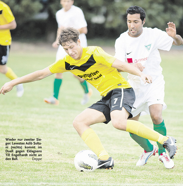 (Von Jens Nigemeyer, Calenberger Zeitung) Der TV Jahn Leveste hat einen Fehlstart hingelegt. Bei der SV Arnum unterlag das Team von Holger Schwabe am Dienstag in der 1. Bezirkspokalrunde etwas unglücklich mit 1:3 (1:1). „Die Niederlage haben wir uns selbst zuzuschreiben“, resümierte der TVJ-Coach. „Wir waren nicht aggressiv genug, sind mit unseren Chancen etwas fahrlässig umgegangen und haben hinten ein paar Mal gepennt.“ Zudem habe die Mannschaft bei zwei Aluminiumtreffern sowie einigen zweifelhaften Abseitsentscheidungen des Referees Pech gehabt. Die Levester dominierten gegen defensiv eingestellte Hausherren jeweils in den Anfangsphasen beider Spielhälften. Vor der Pause sorgte Hendrik Göhr auf Zuspiel von Samet Yildirim für die schnelle Führung (2.). Doch danach versäumten es die neu formierten Gäste, das 2:0 nachzulegen. „Der Schiri hat uns einige gute Chancen weggepfiffen. Außerdem waren wir zu ungeduldig und haben zu viele lange Bälle gespielt“, monierte Schwabe. Nach einer Flanke aus der Halbposition traf Marcin Lebek in der 39. Minute gegen in dieser Szene unaufmerksame Gäste zum 1:1. Direkt nach dem Seitenwechsel scheiterte Yildirim zunächst am SVA-Keeper und traf im Nachschuss nur den Pfosten. Teamkollege Göhr (47.) machte es kurz darauf nicht besser und jagte den Ball an die Latte (55.). „Danach war es ein ausgeglichenes Spiel ohne allzu hohes Tempo“, sagte Schwabe. In der Schlussphase ebnete ein fulminanter 25-Meter-Schuss von Dennis Schnellbächer den Arnumern den Weg zum Sieg (80.). Gegen nun hinten auflösende Levester nutzten die Platzherren einen Konter durch Christian Liebig zum Endstand (85.). „Jetzt wissen wir, dass wir noch etwas zu tun haben“, nahm Schwabe das Ausscheiden aus dem Pokalwettbewerb gelassen. TV Jahn Leveste: Büchter – Fätckenheuer (81. Altinova), Benne, Parwanta, Romera – Nicolai, Habibi, Yildirim, Rose, Tuereyen (84. Sahin) – Göhr 09.08.2012 / LKCZ Seite 6 Ressort: SPOC |