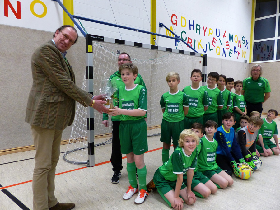 « zurück Leveste (HE) Die D-Junioren des TV Jahn Leveste freuen sich über einen Satz neue Trikots. Baron Hubertus Freiherr Knigge aus Leveste spendierte dem Team des Trainerduos Matthias Sander und Walter Schuschel ein schickes neues Outfit in grünen-weißen Vereinsfarben. Besonderer Hingucker ist aber sicherlich der nicht alltägliche Brustaufdruck mit dem Slogan "Landwirtschaft dient allen". "Das ist eine wichtige Aussage. Grade in Leveste haben wir einen Bezug zum Landleben und ich bin selbst auch Landwirt", berichtet Hubertus Knigge, der mit seiner Familie schon lange Zeit eine traditionelle Verbindung zu den ortsansässigen Vereinen und Institutionen hält. ![]()