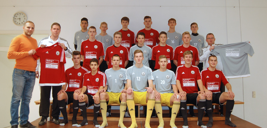 Leveste (HE) Nicht nur sportlich geben die II. A-Junioren des JFV Calenberger Land derzeit eine gute Figur ab. Der Spitzenreiter der Kreisliga mit Spielort Leveste ist dank der Hybridenergiehaus GmbH jetzt auch optisch gut aufgestellt. Das Unternehmen aus Laatzen sponserte dem Team von Coach Alexander Czapski und Co-Trainer Matthias Sander einen neuen Trikotsatz. "Ich freue mich sehr über das tolle Outfit, da wir so auch eine Identifikation seitens der Spieler mit dem Verein schaffen können", freut sich JFV-Übungsleiter Czapski, dessen Team die Spielkleidung von Konstantin Henkel überreicht bekam. Nach sieben Spielen haben die JFV-Kicker die Maximalausbeute von 21 Punkten und 27:1 Tore auf dem Konto. Das einzige Gegentor kassierte die JFV-Elf beim 3:1-Erfolg gegen den VFL Eintracht Hannover. Das klar beschriebene Ziel ist der Aufstieg in die Bezirksliga. "Hier sind wir auf einem guten Weg", blickt Czapski optimistisch voraus.