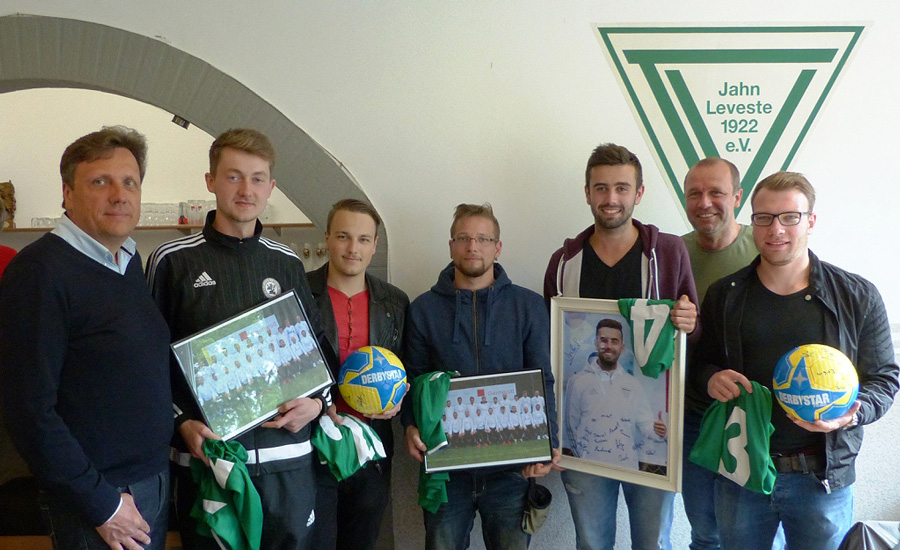 Am 4. Juni 2016 fand in der Sporthalle des MCG die erste Gürtelprüfung des Jahres mit Prüfer Carsten Runge statt. Neben 11 Levester SportlerInnen waren auch wieder drei Gäste der Universität Hannover dabei. Abteilungsleiterin Stephanie Kahms nahm zusammen mit ihrer kleinen Tochter als Zuschauer Teil und freute sich sehr über die tollen Leistungen. Hanka Pelz und Daniel Ehrhardt konnten aufgrund ihrer sehr guten Leistungen sogar direkt vom weißen Gürtel auf den Gelben überspringen. Ein großes Dankeschön geht daher an dieser Stelle an das gesamte Trainerteam für die Vorbereitung und Betreuung vor und während der Prüfung. Es haben bestanden: weiß-gelb: Daniel Michler gelb: Ian Pelz, Hanka Pelz, Daniel Ehrhardt, Lorenz Bechtloff gelb-grün: Emma Lühmann, Nikolai Zapke grün-blau: Jens Keller blau: Maxime Keller, Jasmin Norra blau-braun: Beate Bechtloff Herzlichen Glückwunsch. ![]() Nach einer glänzenden Bilanz mit 15 Zählern und 10:1 Toren aus fünf Spielen in der Gruppenphase haben die E-Junioren des TV Jahn Leveste beim Sparkassen-Cup in der Runde der besten acht Mannschaften aus der Region Hannover gestanden. Stoppen konnte sie erst der Vize-Kreismeister SC Langenhagen. Der Levester NAchwuchs musste im Viertelfinale eine 0:3-Niederlage hinnehmen. dh ![]() Jugendfußballerinnen und Jugendfußballer aufgepasst - Die "Kleine Fußballschule" macht vom 30. September bis 2. Oktober Station beim TV Jahn Leveste! Unter dem Motto "Trainieren und Spaß am Fußball" können alle fußballbegeisterten Kids von 5 bis 16 Jahren an dem dreitägigen Fußballcamp teilnehmen. Weitere Informationen zu Inhalten, Teilnahmegebühren und zur Anmeldung sind unter www.kleine-fussballschule.de abrufbar. Außerdem steht unser Jugendleiter Matthias Sander unter Tel. 0173 - 5722931 für Fragen aller Art gern zur Verfügung. ![]() Die Saison unserer Ersten ist zu Ende und es heißt Abschied nehmen. Torben Mowka, Florian Much, Alexander Neumann, Jan-Marvin Jovers und Davin Vormeng werden in der nächsten Spielzeit nicht mehr die Fußballschuhe für den TV Jahn schnüren. Trainer Holger Schwabe, Co-Trainer Karl-Heinz Conrad, Betreuer Bülent Savasir, Spartenleiter Wolfgang Grosam und alle Mitspieler wünschten dem scheidenden Quintett beim Saisonausklang im Sportheim alles Gute und bedankten sich für die gemeinsame Zeit. Auch von dieser Seite wünschen wir den fünf Kickern alles Gute für ihre nächsten sportlichen Stationen beim SV Gehrden, SV Weetzen und dem SC Hemmingen-Westerfeld. ![]() Der TV Jahn Leveste bietet Kindern und Jugendlichen im Alter von sechs bis 16 Jahren wieder zwei Ferien-Tenniscamps vom 27. Juni bis 1. Juli und vom 25. bis 29. Juli an. Gespielt wird täglich von 9 bis 13 Uhr. Die Kosten für ein Camp betragen 85 Euro pro Teilnehmer. Im Preis enthalten sind eine Videoanalyse, Getränke und warmes Mittagessen. Die Teilnehmerzahl ist auf 20 Spieler je Camp begrenzt. Bis zum 17. Juni kann man sich per Mail an sabine.grosam@gmx.de anmelden. ![]() Goltern (He) Grün-Weißer Jubel in Goltern: Die II. Herren des TV Jahn Leveste haben den Abstiegskrimi beim direkten Rivalen TSV Goltern II mit 2:1 (1:1) gewonnen und sind auch in der kommenden Saison in der 2. Kreisklasse am Ball. Tristesse hingegen bei den Gastgebern, die den Gang in die Drittklassigkeit antreten müssen. "Das es diese Spielkonstellation am letzten Spieltag geben musste war sehr unglücklich. Wir hatten heute in der ersten Halbzeit in einigen Situationen Glück. Nach dem Seitenwechsel haben wir das Spiel aber im Griff gehabt und am Ende auch verdient gewonnen. Für Goltern tut es uns dennoch leid. Einen musste es heute leider erwischen und das ist natürlich für das betroffene Team alles andere als schön", sagte Levestes verletzter Torhüter Christian Helmstedt. Weiterlesen »