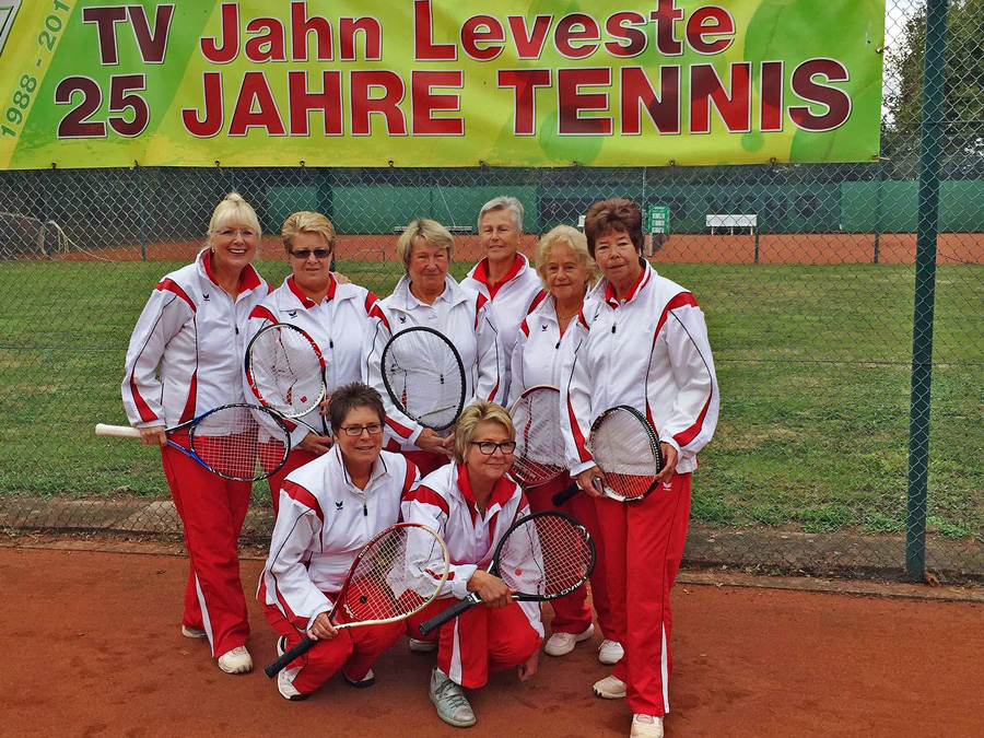 Leveste (HE) Die Tennisdamen 60 des TV Jahn Leveste haben zum zweiten Mal in Folge die Regions-Sommerrunde 2016 im Damen-Doppel gewonnen. "Das ist eine tolle Leistung", freut sich Levestes Tennissportwart Klaus Kaps. Im Halbfinale hatten die Jahn-Damen bei über 30 Grad in einer wahren Hitzeschlacht den TV Berenbostel mit 3:1 besiegt. Auf der Tennisanlage des TC Dollbergen trafen die Levester Filzkugel-Athletinnen im Finale auf den TV Pattensen - und triumphierten ebenfalls mit 3:1. Im November wird das Jahn-Team traditionsgemäß vom Niedersächsischen Tennisverband geehrt. Pläne für die kommende Sommerrunde gibt es im Levester Lager bereits. "Über den Winter hnweg wollen alle fleißig trainieren. Ziel ist in der nächsten Saison der Hattrick", berichtet Klaus Kaps von den ehrgeizigen Zielen der zweifachen Meisterinnen.